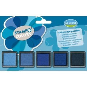 Surtido de 5 tampones de tonos azules para realizar todos sus proyectos. De alta pigmentación se complementan perfectamentes entre si. Secado lento