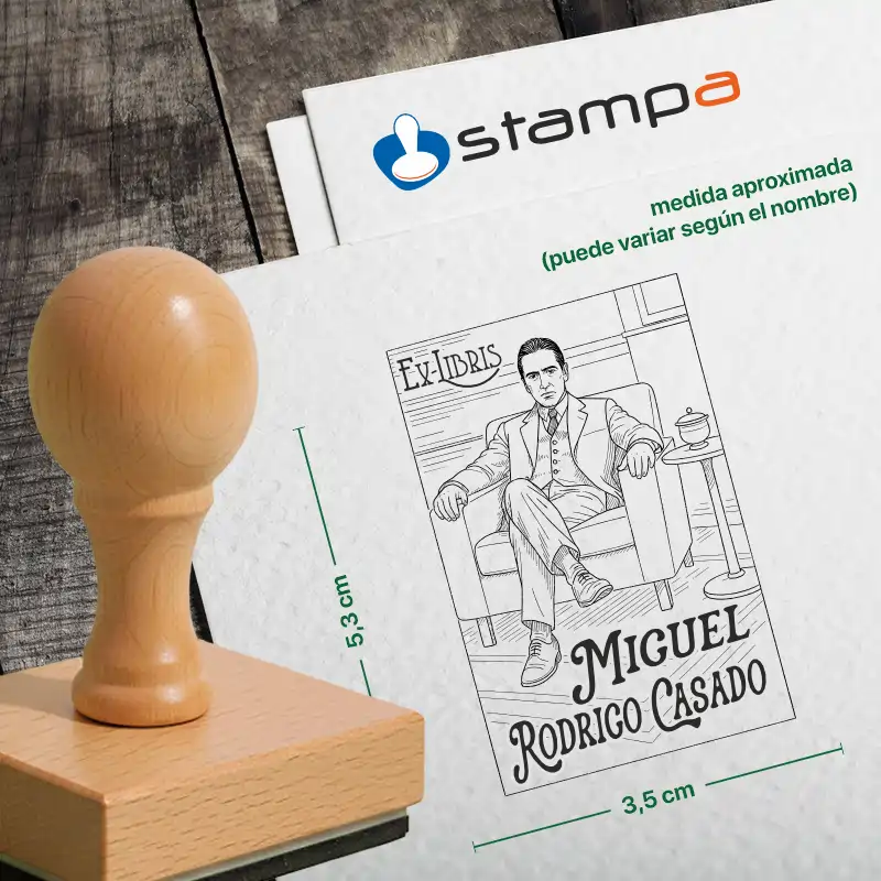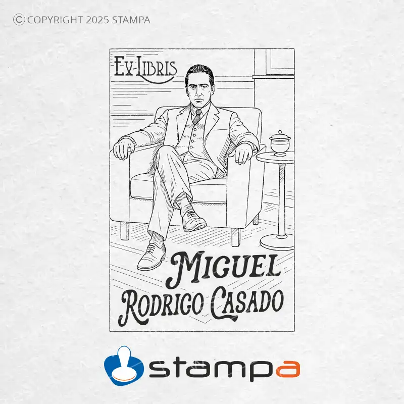 Si Vito Corleone representa el respeto tradicional, Michael Corleone es la encarnación del poder estratégico y la inteligencia. En Stampa, completamos la saga de los Corleone con este Sello Ex Libris Personalizado que muestra a Michael en la cima de su poder, en una pose reflexiva y dominante.