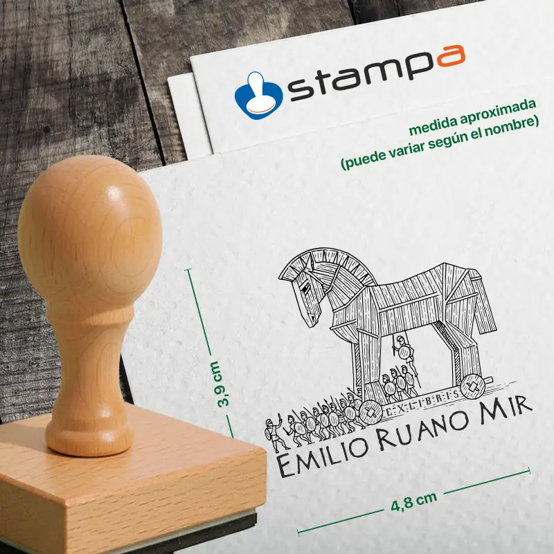 Hay historias que resisten el asedio del tiempo, como la Guerra de Troya. En Stampa, hemos tallado en caucho el símbolo de esa victoria: el inmenso caballo de madera que cambió el destino de una civilización. Este Sello Ex Libris es un homenaje a la inteligencia, la paciencia y los giros inesperados del destino.