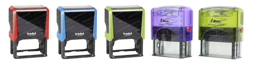 En Stampa.es apostamos por la máxima calidad y variedad, trabajando con los fabricantes líderes mundiales del sector. En nuestro catálogo encontrarás la prestigiosa y duradera gama Trodat (con sus series Printy, Ideal y Professional), la fiabilidad y robustez de los modelos Shiny, y la tecnología de vanguardia de los sellos Colop. Además, disponemos de una excelente serie económica, perfecta para quienes buscan la máxima funcionalidad al mejor precio del mercado.
