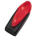 Pulsando en la parte superior con solo dos dedos el sello de despliega ya entintado listo para sellar, de la misma forma se cierra. Contiene en el interior un bástago de plástico para reforzar la impresión y evitar que se mueva.