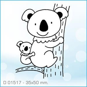 Tamaño del sello 35×50 mm. Sello de caucho con montura de madera. Este bonito motivo es un koala y su pequeña cría agarrados en un eucalipto. Marsupial originario de Australia.