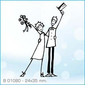 Tamaño del sello 24×35 mm. Sello de caucho con montura de madera. Esta feliz pareja de recien casados nos saludan y nos hacen partícipes de su felicidad. Para cualquier tipo de tarjeta e invitaciones de boda.