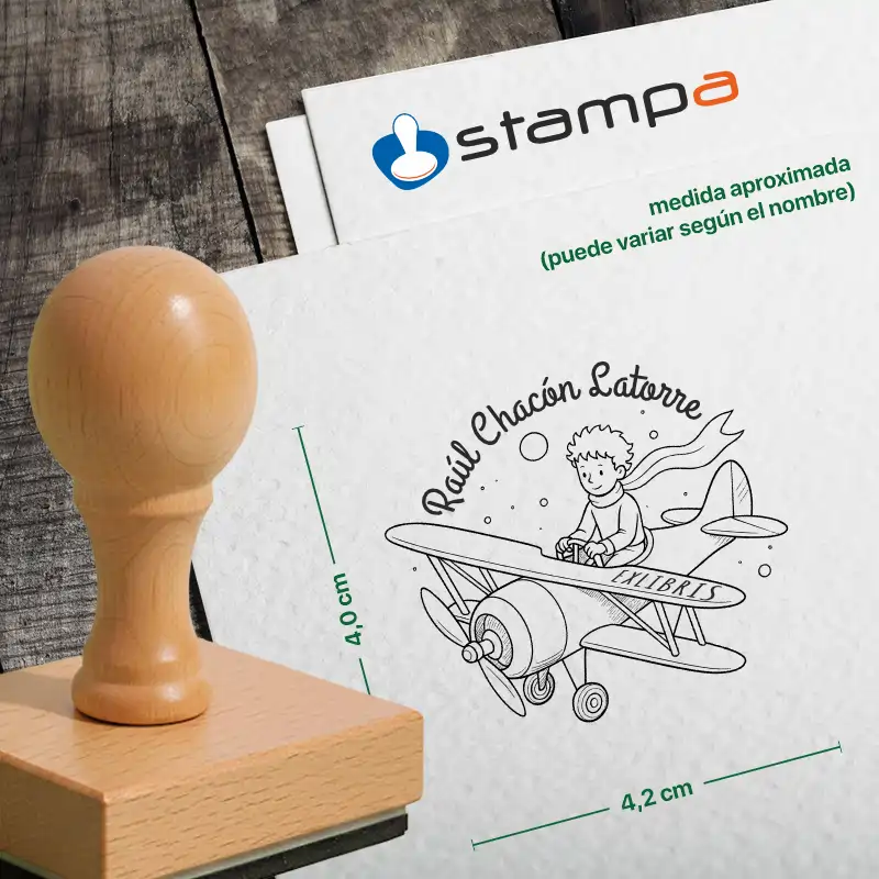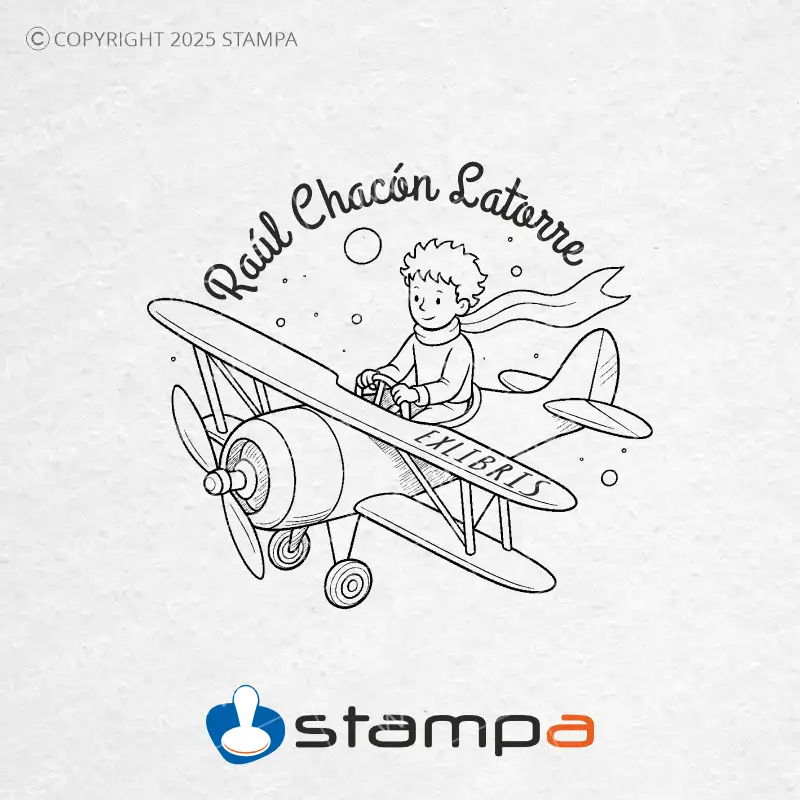 Sello Ex Libris El Principito en Avioneta Personalizado | El Viaje Mágico