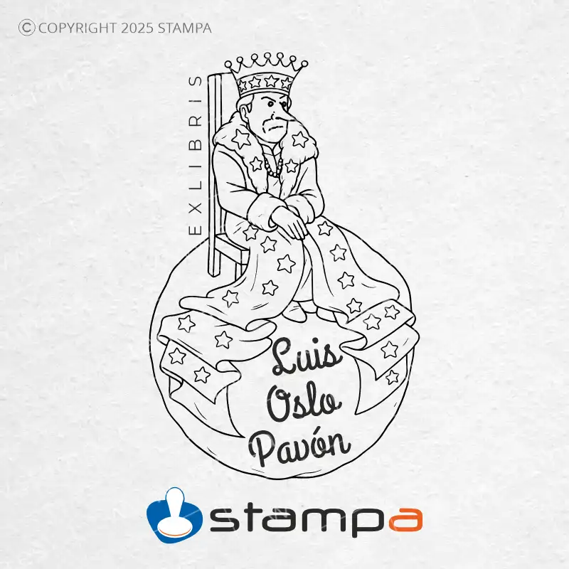En su viaje por los asteroides, el Principito conoció a un rey que reinaba sobre todo… aunque no tuviera súbditos. En Stampa, recuperamos a este personaje fascinante con un Sello Ex Libris Personalizado que te convierte en el monarca absoluto de tu colección de libros.