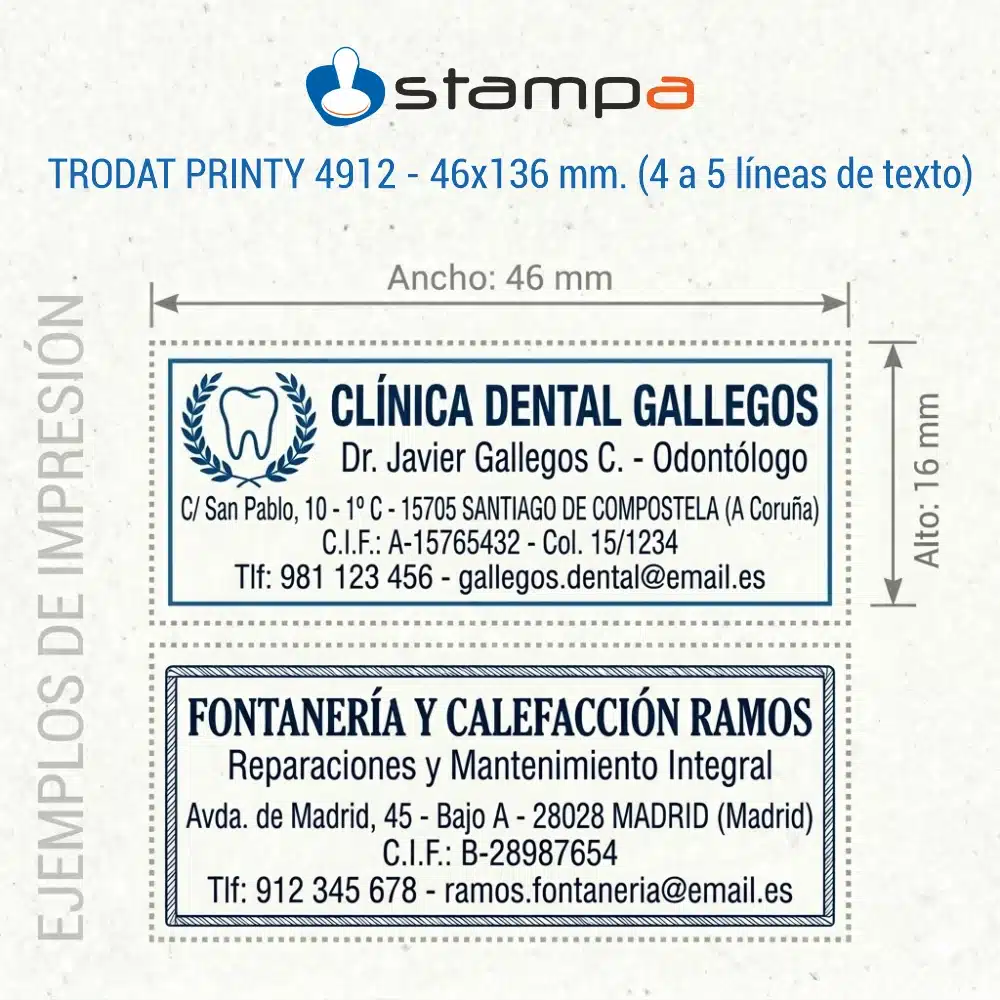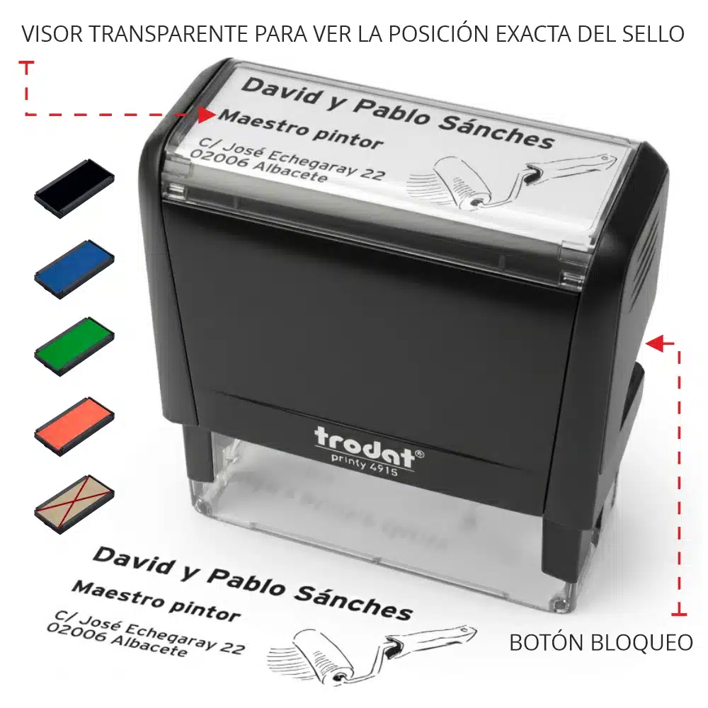 En Stampa.es, llevamos la personalización de tu Trodat Printy 4912 al siguiente nivel. Utilizamos tecnología láser de alta definición para grabar el caucho, asegurando que cada detalle de tu logotipo o cada letra de tu dirección fiscal se transfiera al papel con una nitidez impecable desde la primera hasta la última impresión.